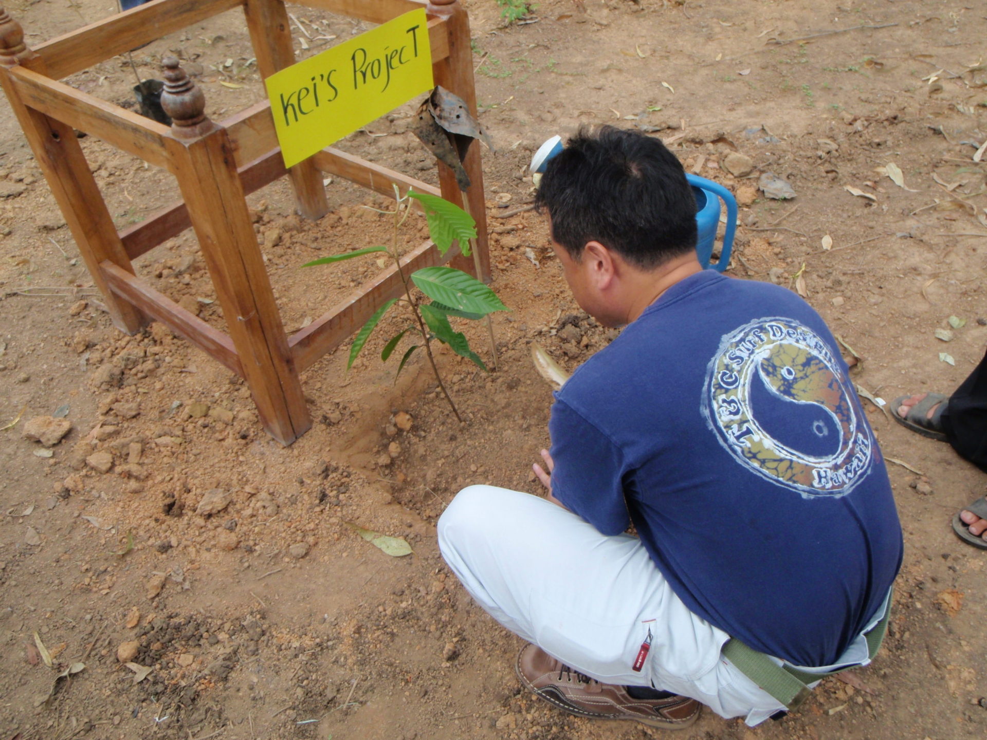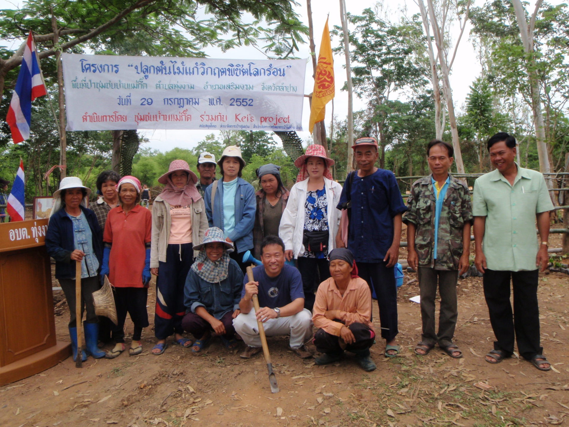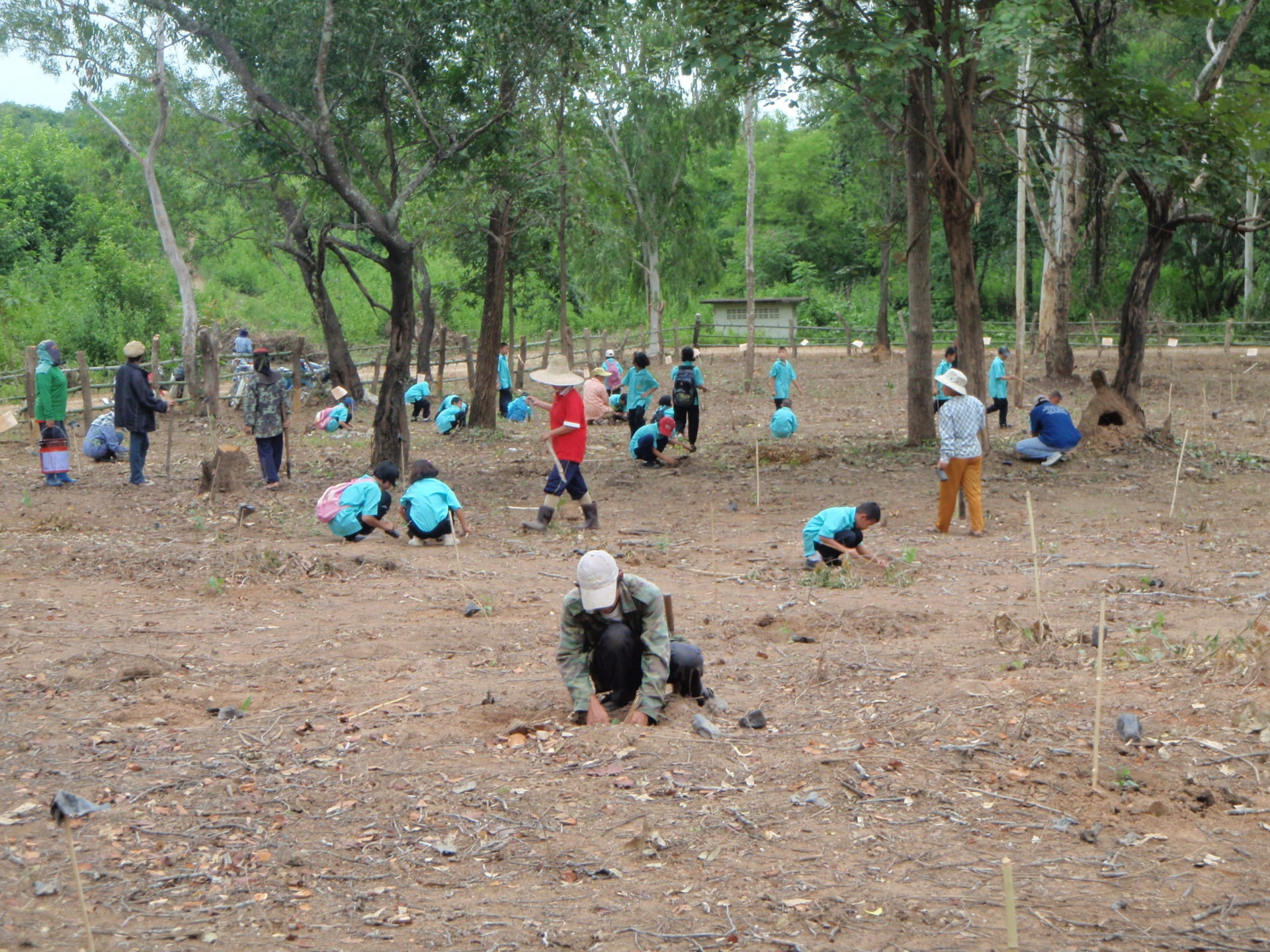 タイの森林局に協力していただき、マンゴーの苗木と地元に自生する樹木の苗木を約2,000本の植樹を行いました