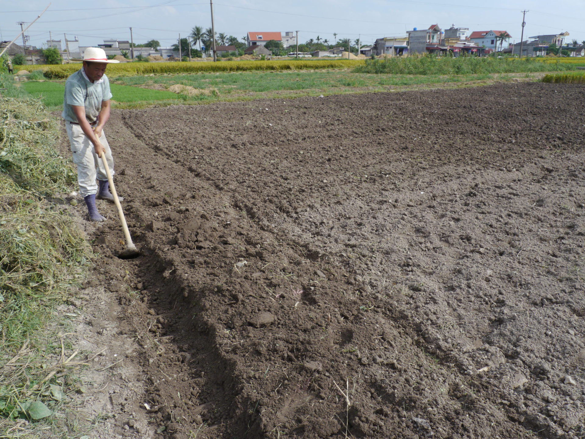 ベトナム、タイビンのアンキドン村へ行き、有機野菜を栽培するための土地の準備を行いに行きました。