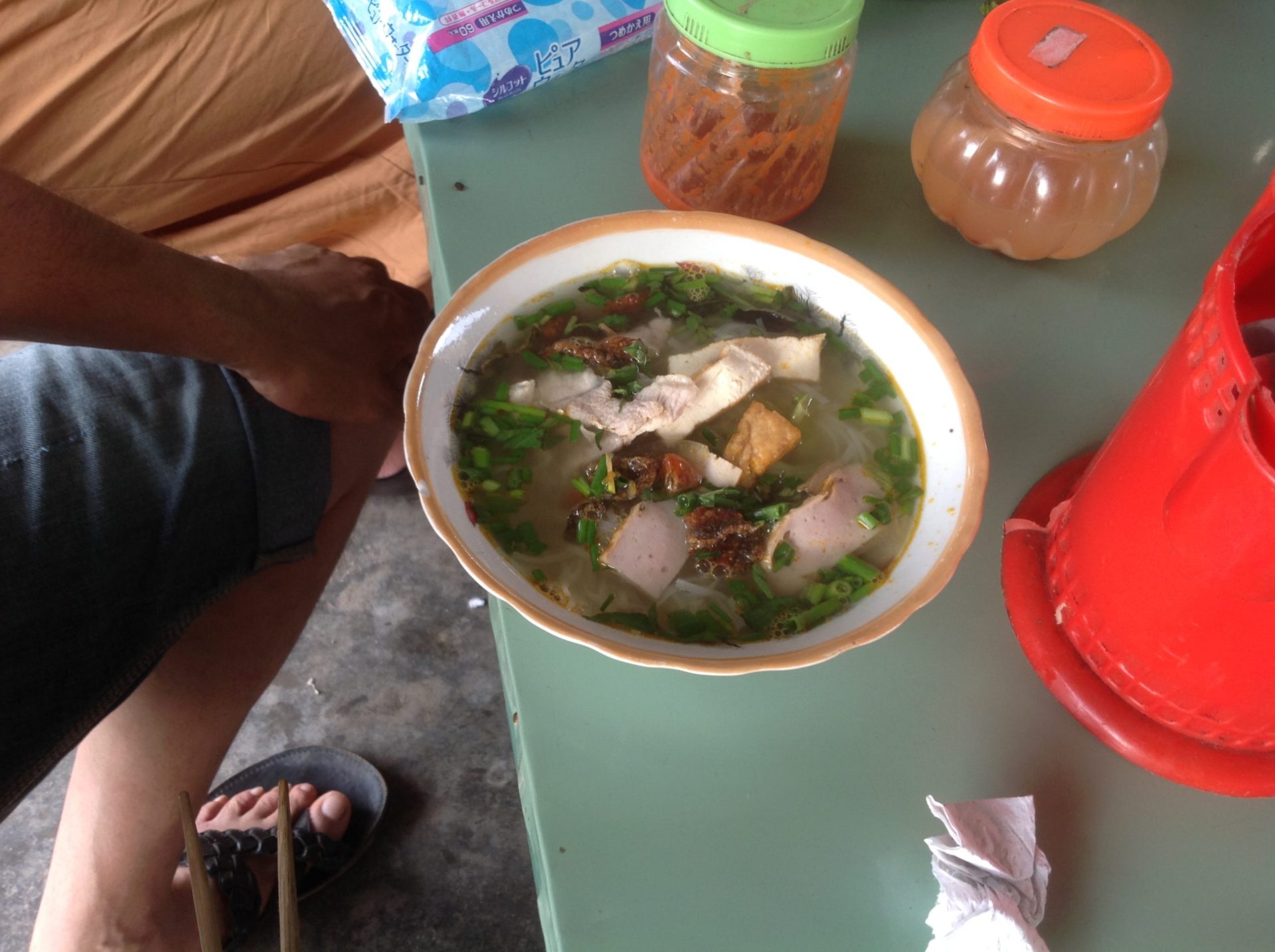 朝ごはんは市場で1杯50円のフォーを食べました。ベトナムの方は羽化しかけの卵も食べていました。