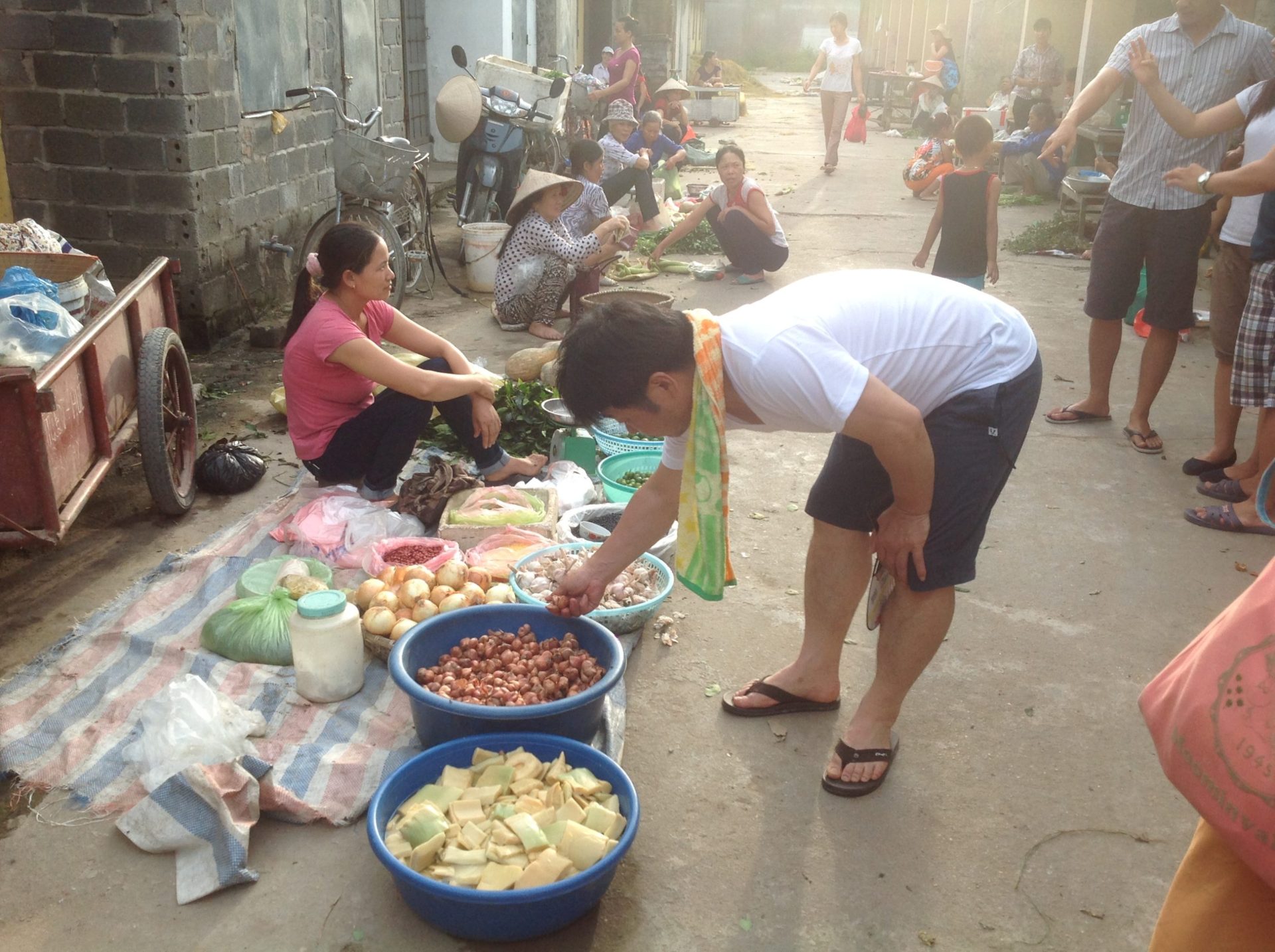 この村の人達は採れた野菜を朝市で販売していました