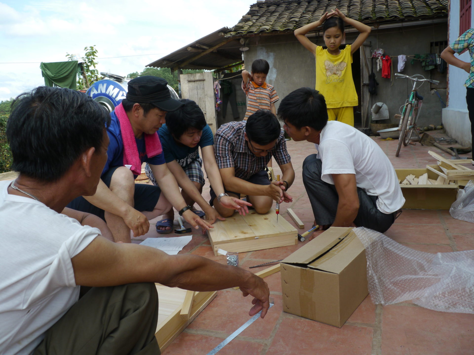 協力してください家族に巣箱の作り方を伝え、養蜂場から蜂も購入しました。