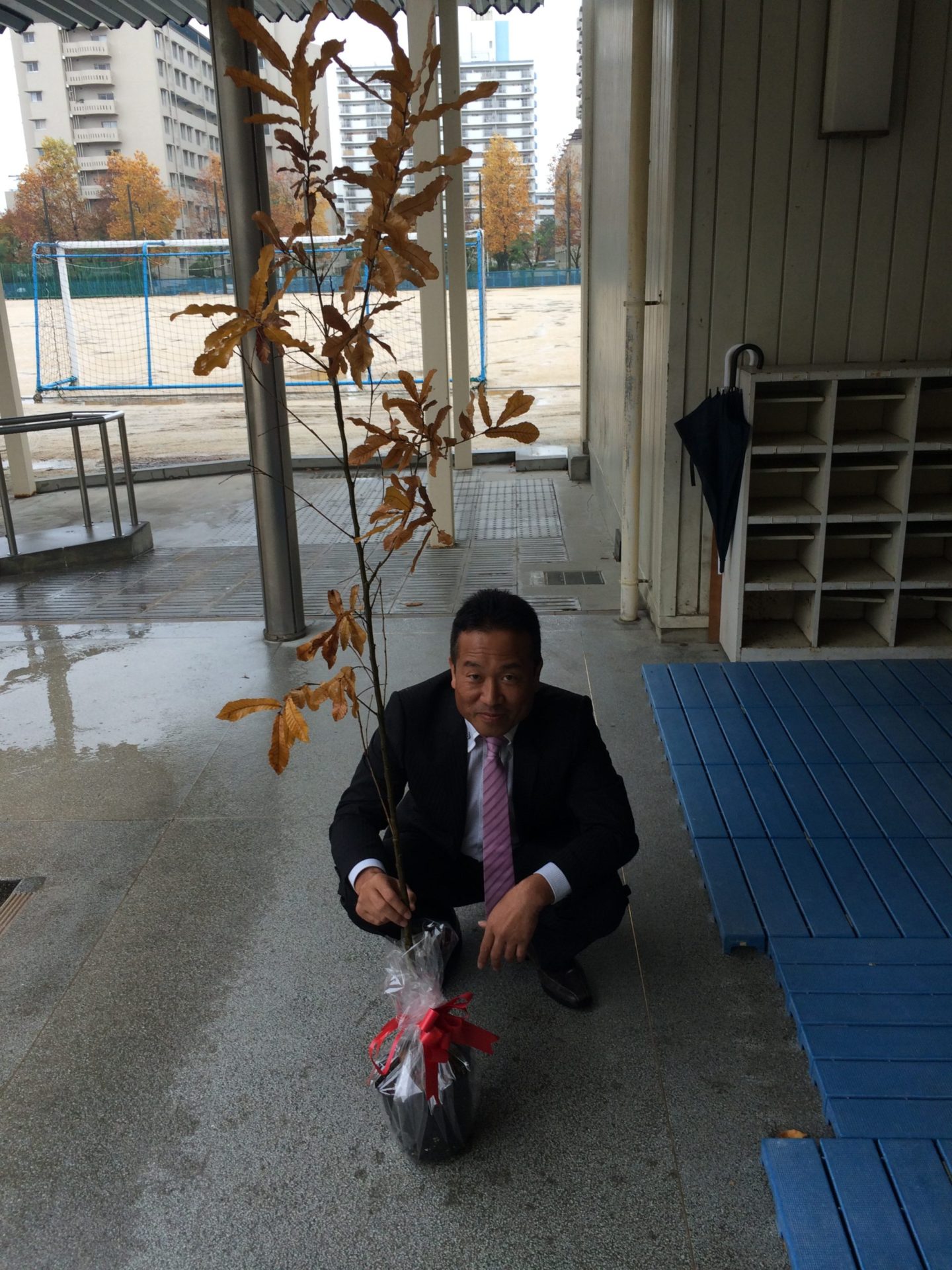 そして今回は一緒に植えることはできなかったので、クヌギの贈呈という形を行いました。